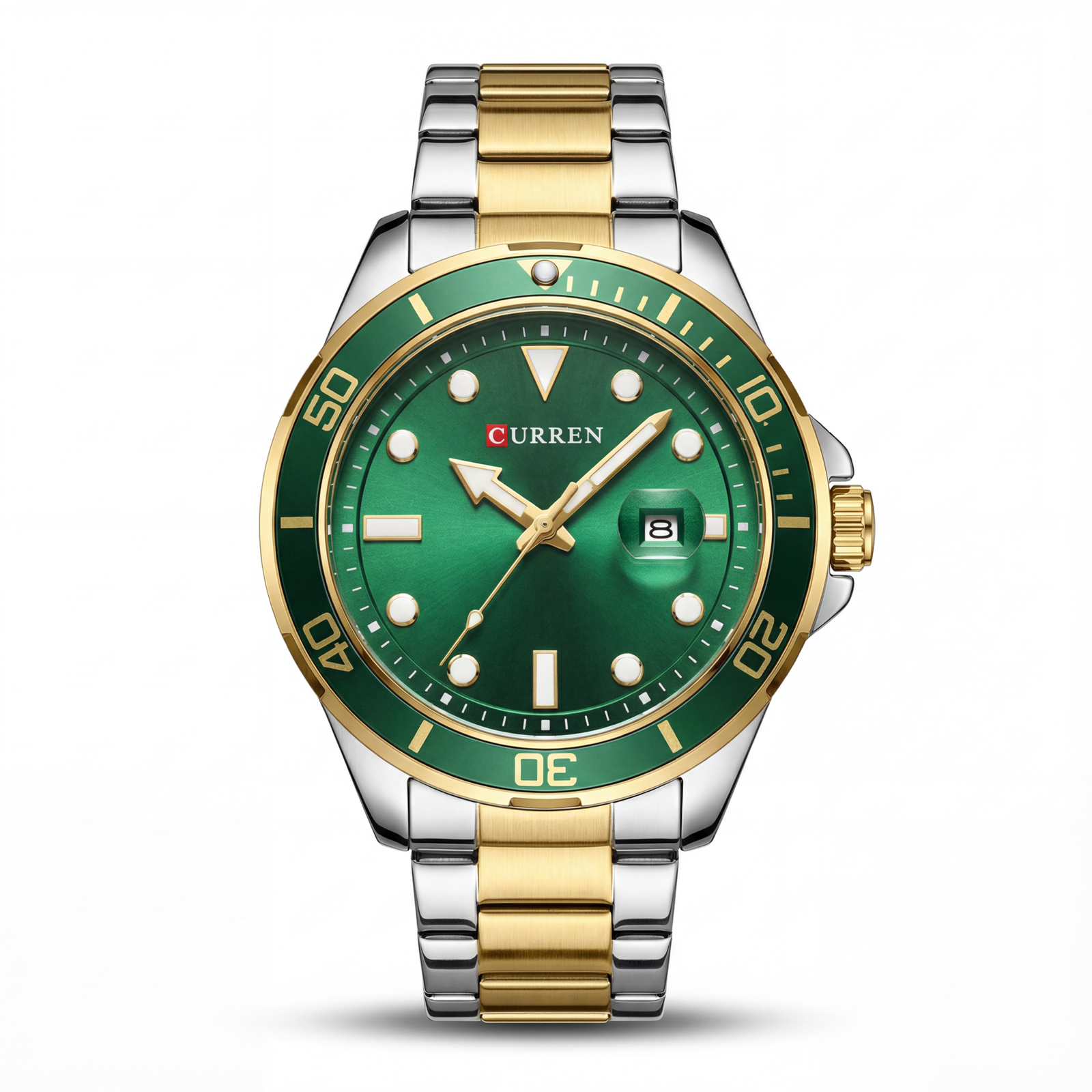 The Curren Emerald Gold Couple Edition combines bold color with refined craftsmanship. Featuring rich emerald green dials accented with gold-tone details, this set delivers a powerful yet elegant statement. The masculine diver-inspired design is paired with a sophisticated crystal-accented ladies’ watch for perfect balance. Built with durable stainless steel and polished gold elements, both pieces offer long-lasting shine and comfort. An ideal gift bundle for couples who love standout style with a luxurious touch.