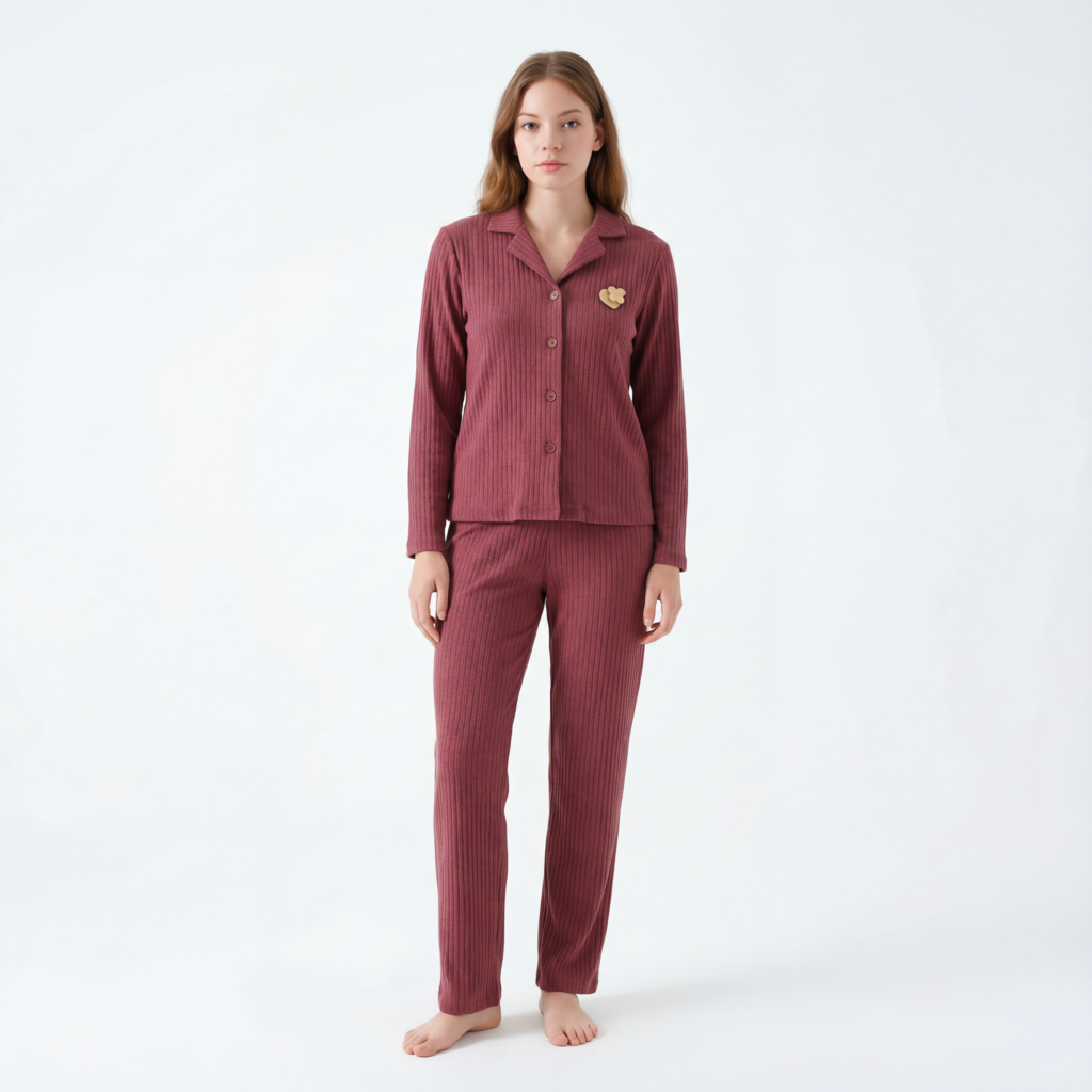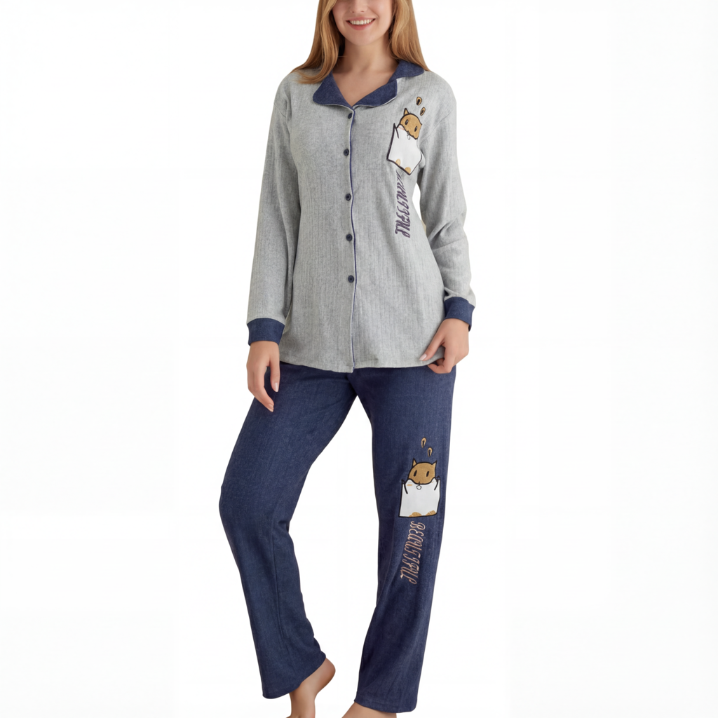 Charming pajama set with bunny print details, soft fabric, and a cozy fit for restful sleep.