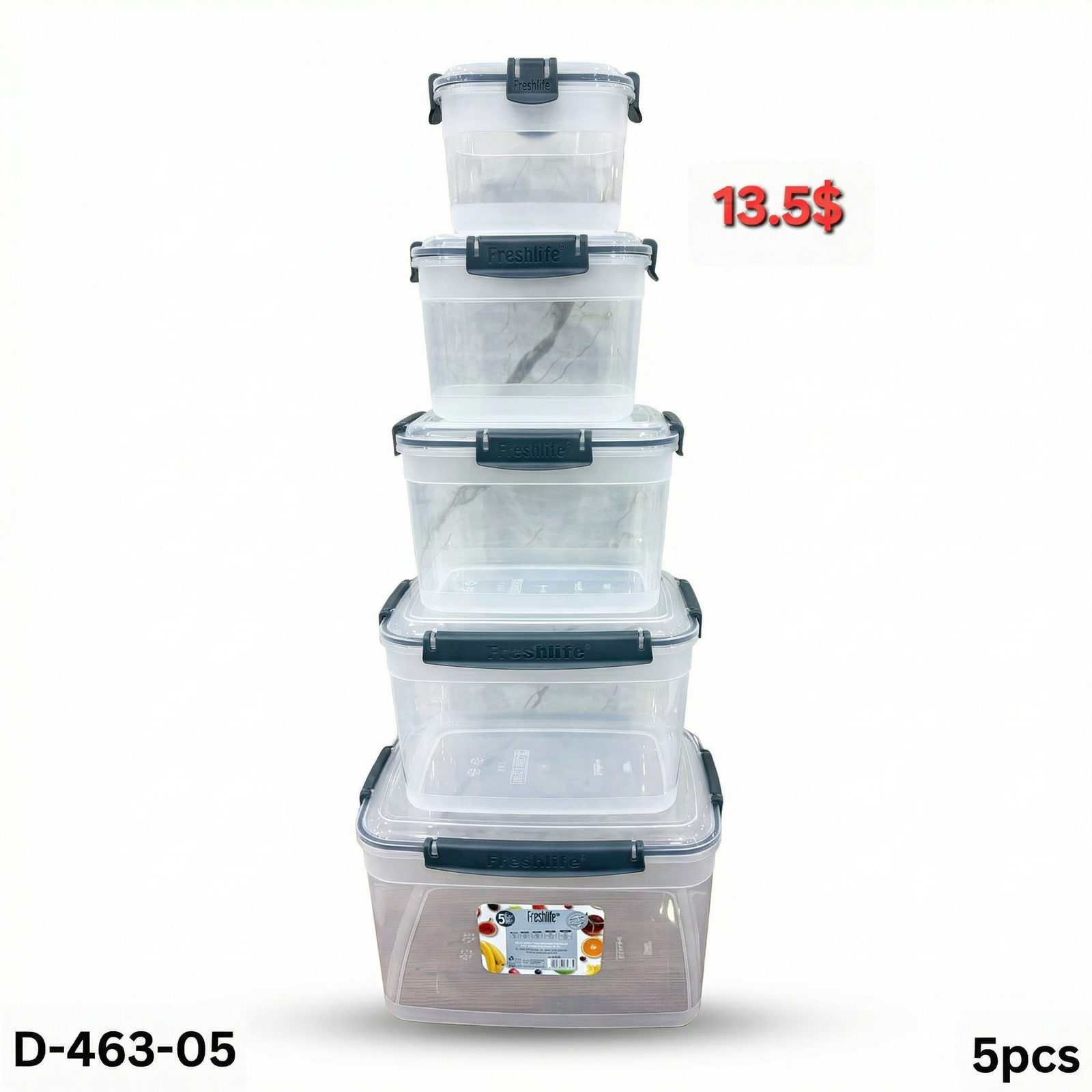 The FreshLife 5-piece container set offers different capacities for daily needs.