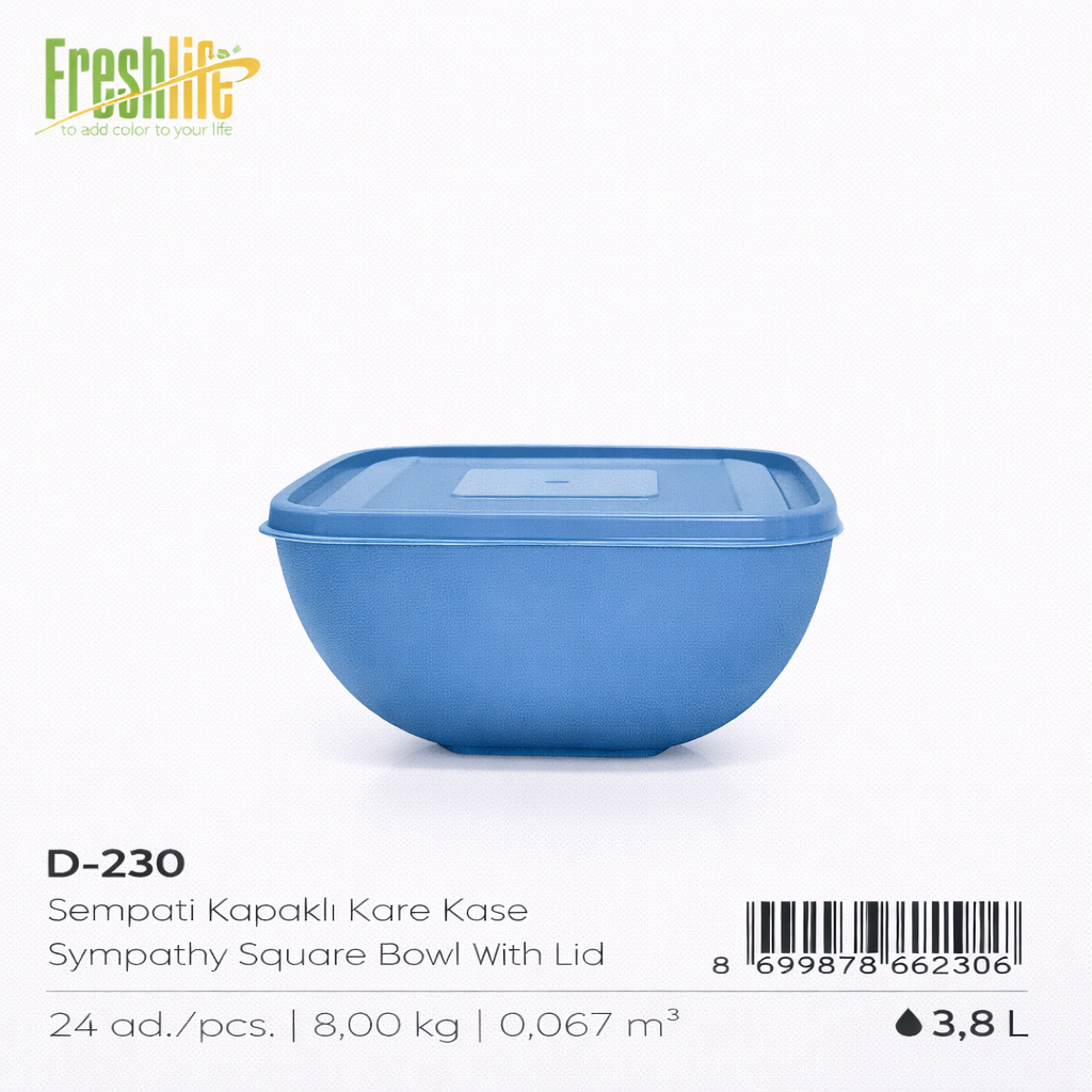 The FreshLife 3.8L square bowl offers a versatile size for daily kitchen tasks.