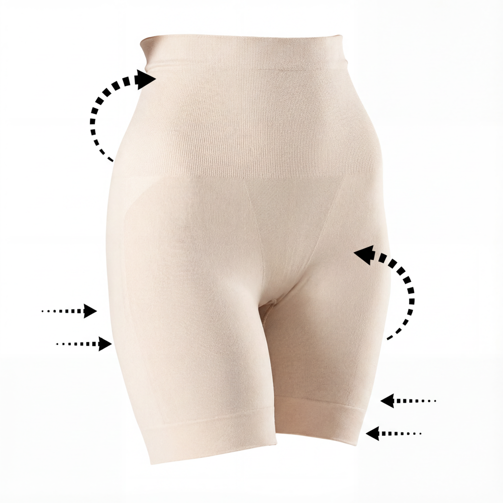 High-waist shaping shorts designed to smooth the waist and hips, providing firm yet comfortable support.
