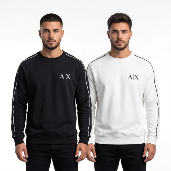 A|X Logo Crewneck with Sleeve Tape (Black/White)